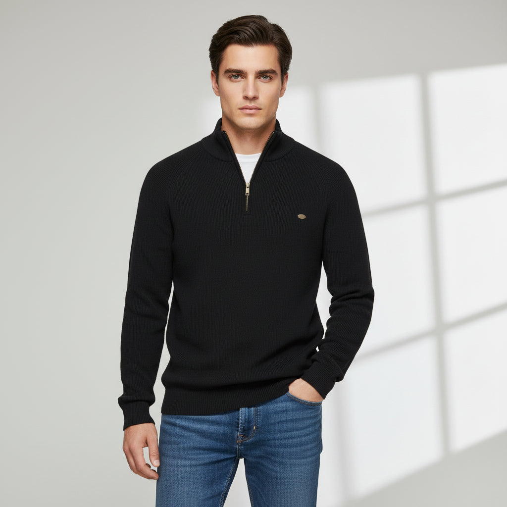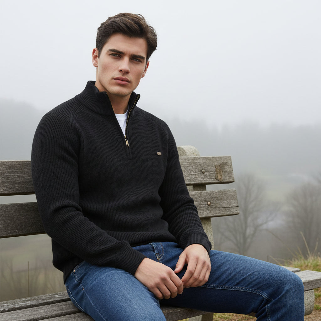 The sleek half-zip design offers a contemporary style that transitions effortlessly from casual weekends to smart-casual occasions. Pair it with jeans and sneakers for a relaxed look, or layer it over a shirt for a refined, versatile outfit.