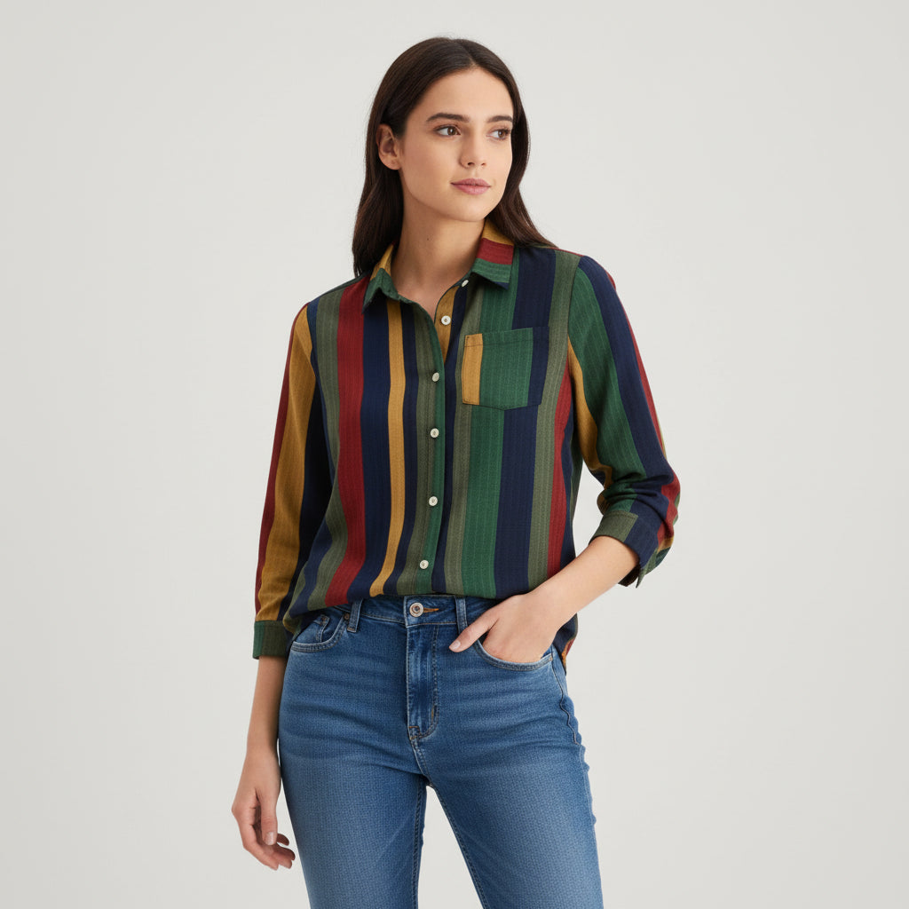 Women's Contrast Color Button-Down Blouse